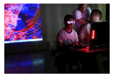 Floating Gardens is an online gathering, located in various nodes within the physical territory. It's an interactive 3D space which creates a neutral ground, where people can gather and explore through navigation in a zero gravity environment, chatting anonymously with others in realtime. The Garden is rendered stereoscopically to augment the three dimensional sensation of its inhabitants. Floating Gardens is then a space technology that provides the possibility for encounter and exchange, establishing a fertile soil for surface democratization. The idea is to place the nodes in such locations in which stratified structural differences will produce emergent communicative phenomena. Santa Martha penitentiary, the World Trade Center in Mexico City, and Museo de Arte Alameda hosted the Floating Gardens simultaneously at Transitio MX02.